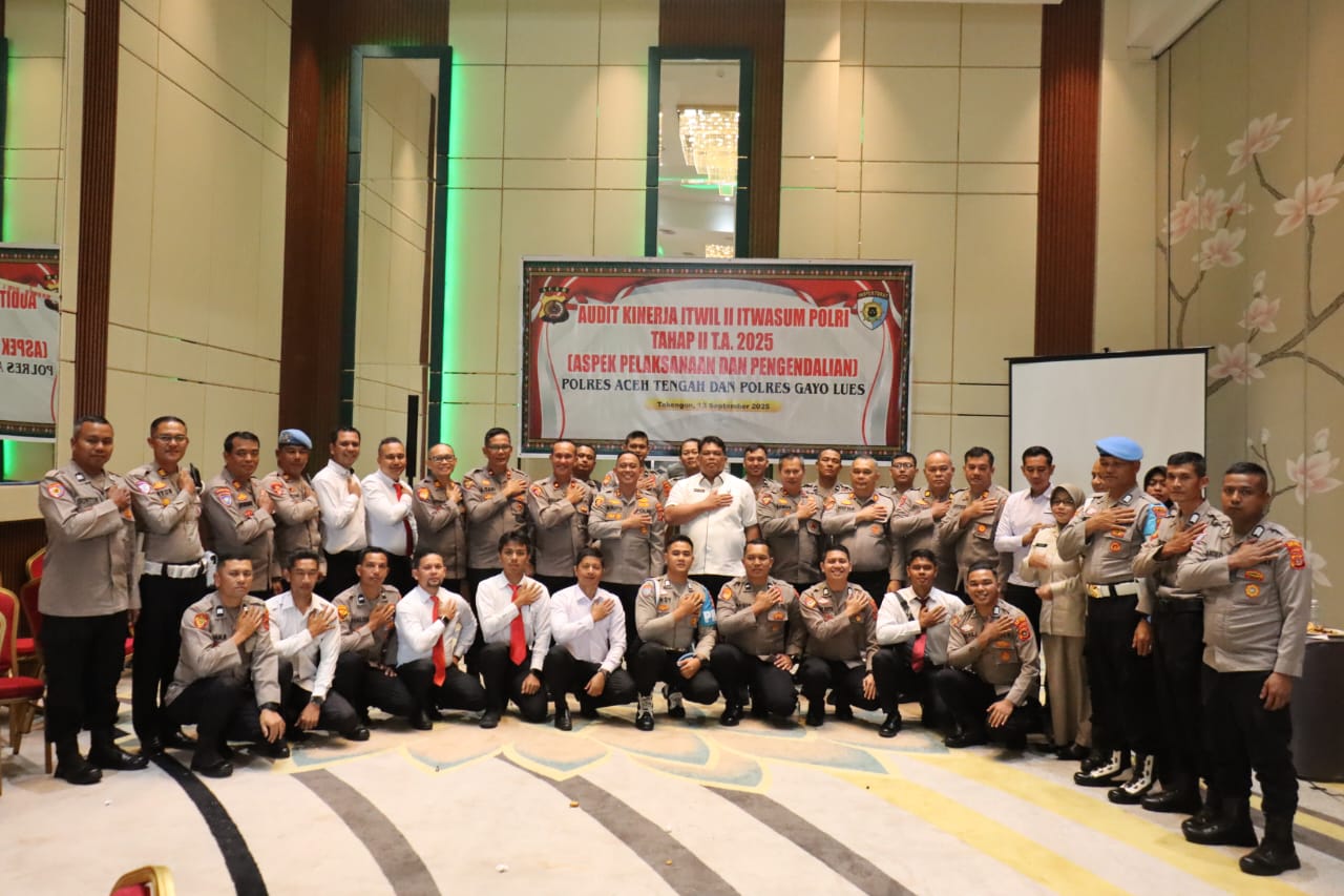 Lintas Berita Rakyat | Aceh Tengah – Tim Audit Kinerja Tahap II T.A. 2025 Itwasum Polri melaksanakan pemeriksaan terhadap Polres Aceh Tengah dan Polres Gayo Lues dengan fokus pada aspek pelaksanaan dan pengendalian, Sabtu (13/9/2025), bertempat di Aula Ballroom Hotel Parkside Takengon.