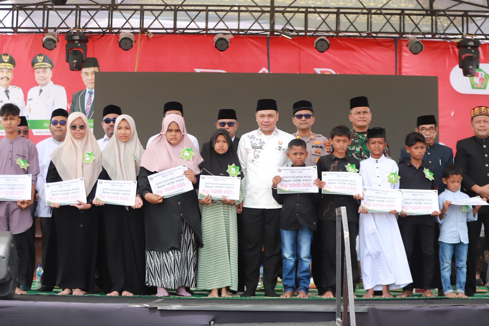 “Selain Khanduri Akbar dengan menyediakan 5.750 bungkus nasi dari SKPK, BUMD dan BUMN, serta donatur, juga turut menyantuni 600 anak yatim/piatu, masing-masing Rp1 juta bersumber dari Baitul Mal Pidie,” kata Ketua PHBI/Panitia Maulid, drh. H. Fazli, M.Si., yang juga Kadis Syariat Islam Pidie.