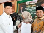 Pj. Bupati Aceh Tengah Serahkan Sertifikat Tanah Wakaf Dan Sertifikat Produk Halal