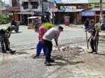 TNI-Polri di Aceh Tengah Gotong Royong Tambal Jalan Berlubang dan Pembersihan Drainase
