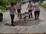 Cegah Laka Lantas Polisi di Aceh Tengah Tambal Jalan Rusak Berlubang