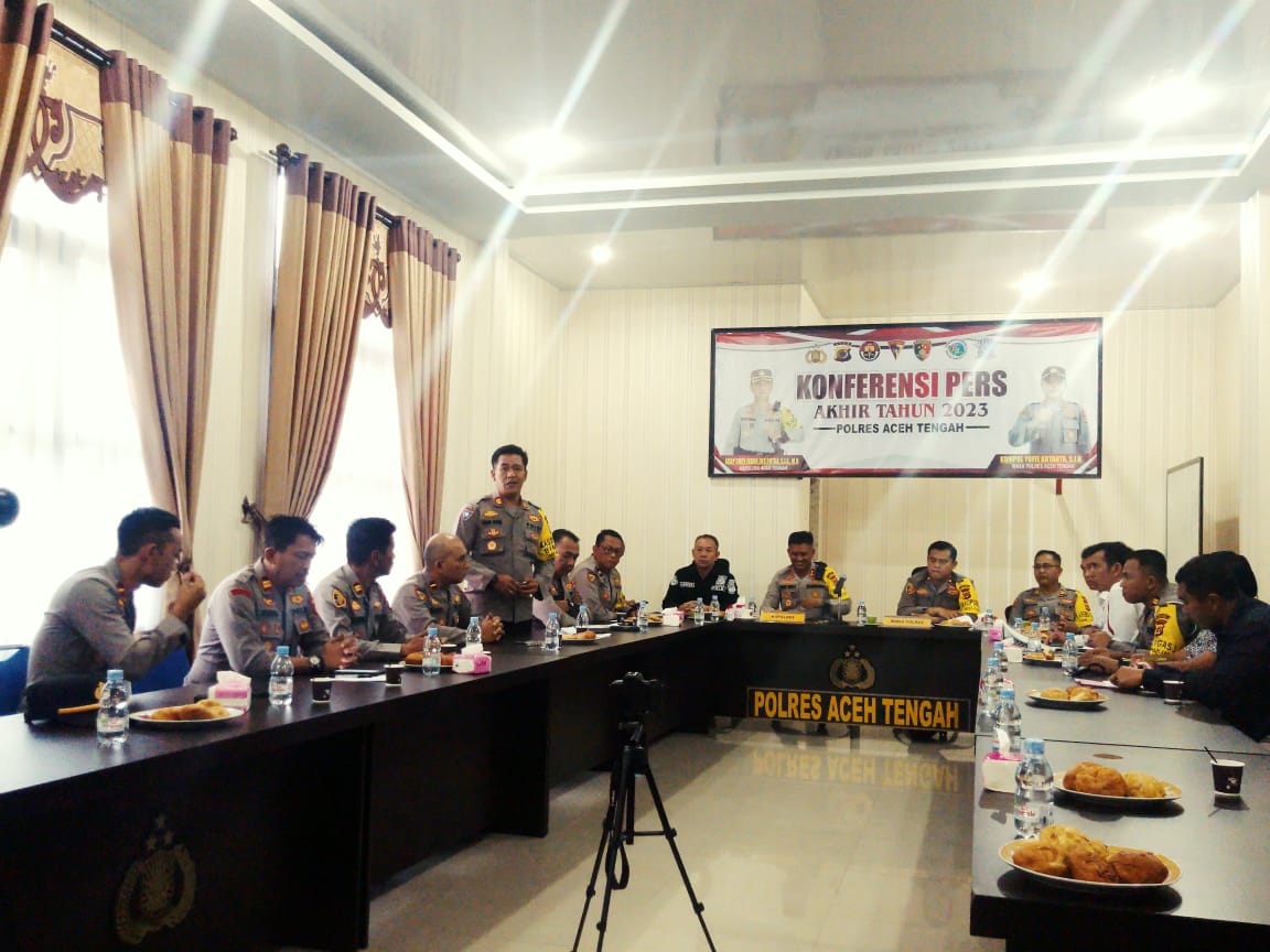 “Hari ini adalah hari akhir untuk tahun 2023, mudah mudahan pengalaman di tahun 2023 untuk menjadi cambuk di tahun 2024. Semoga situasi Kamtibmas terus aman dan nyaman, kondusif di wilayah Aceh Tengah”. Demikian awali kata sambutan Akbp Dody, saat memimpin konferensi pers akhir tahun 2023 di ruang Rupatama Mapolres Aceh Tengah, Minggu (31/12/2023).