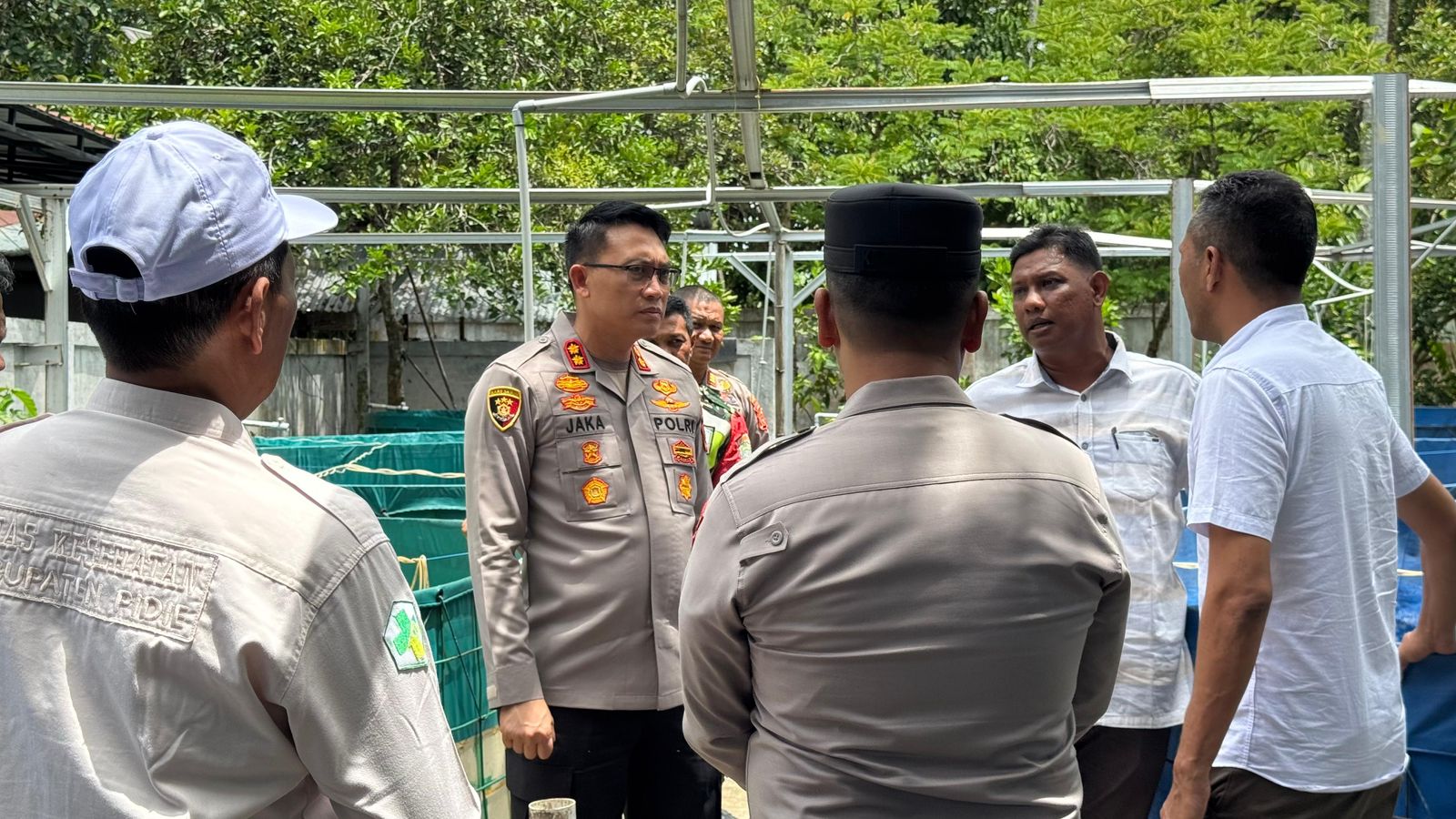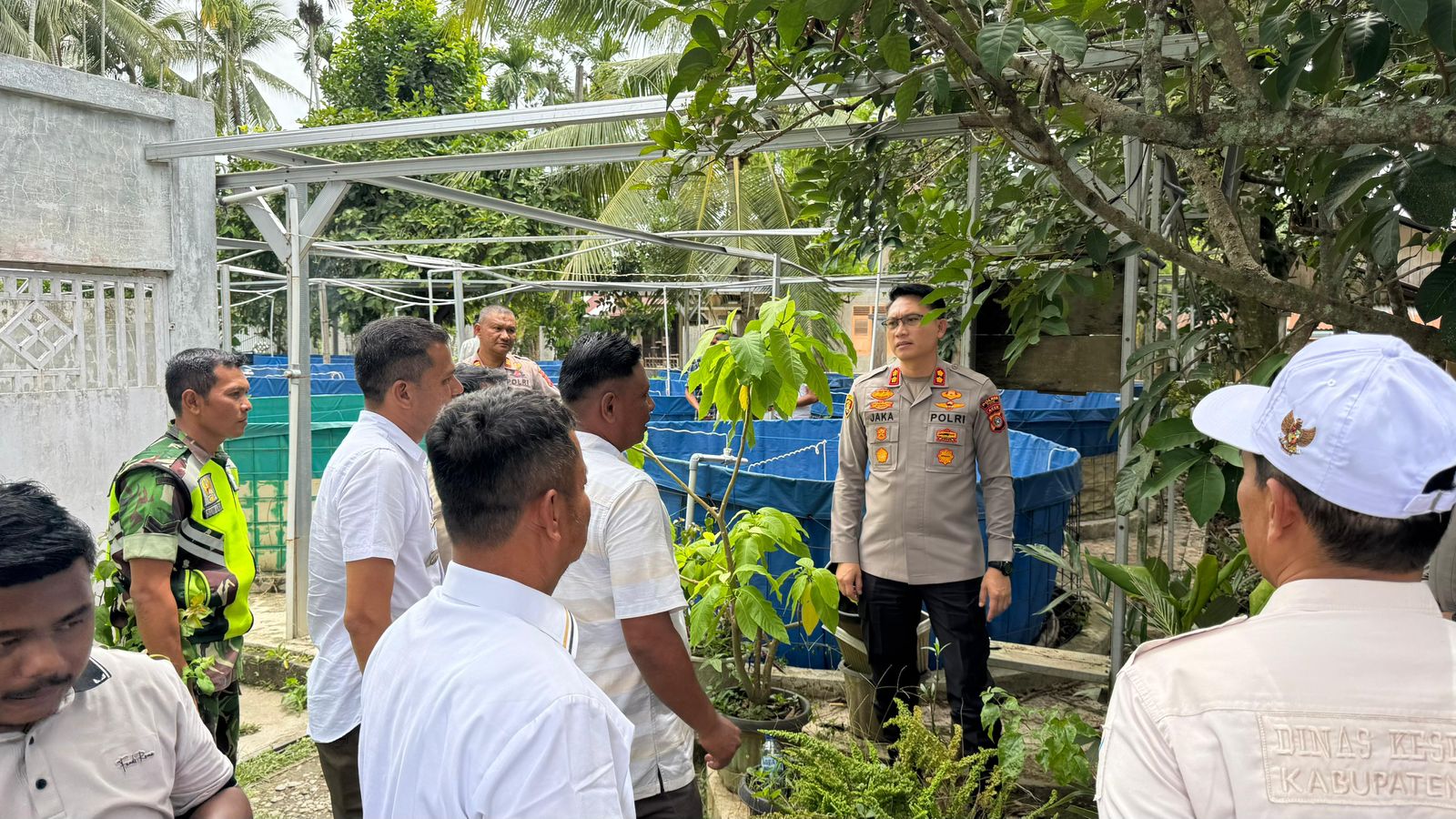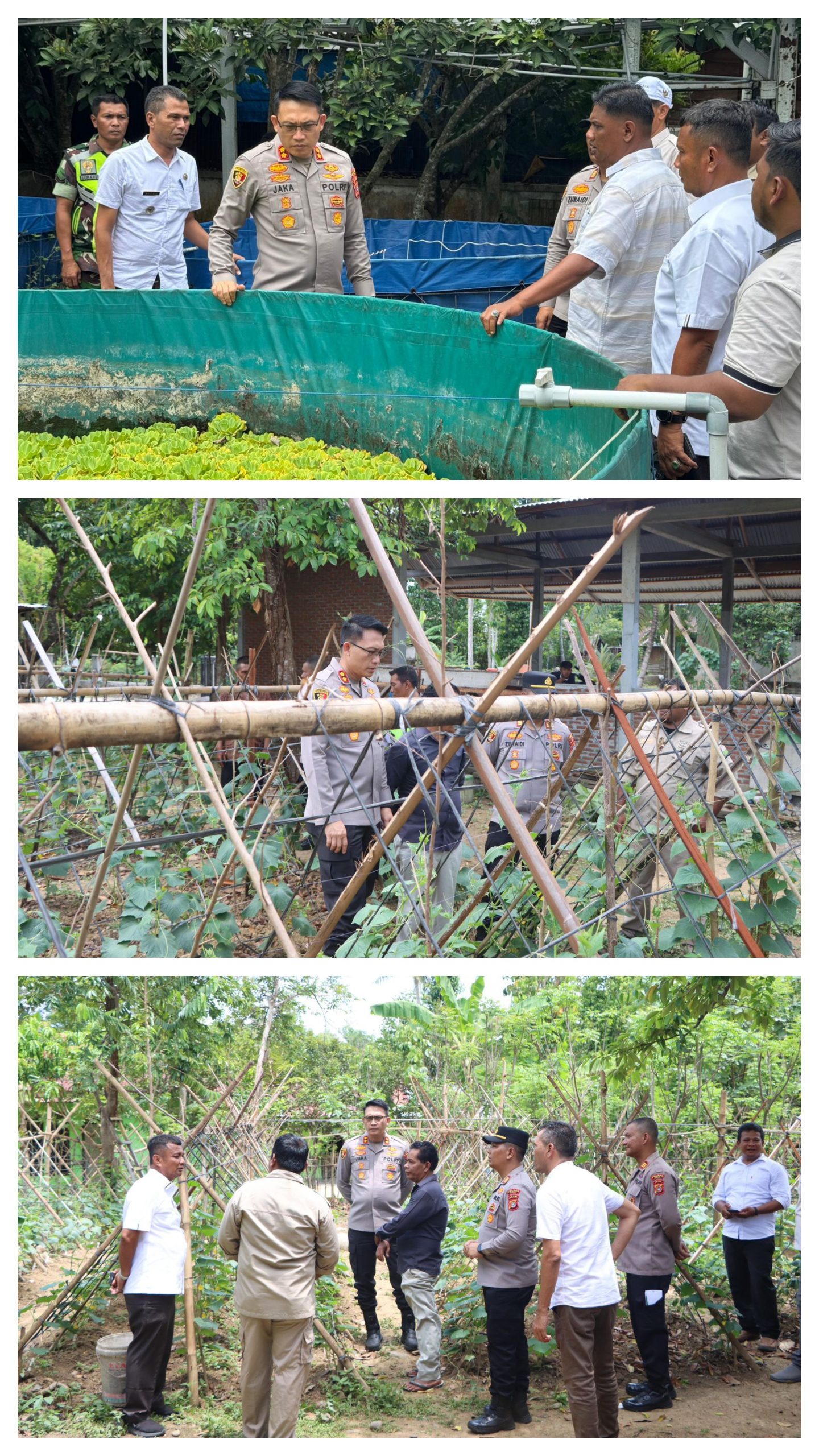 Kapolres Pidie bersama rombongan meninjau langsung lokasi pertanian, peternakan, dan perikanan milik warga yang menjadi bagian dari program Gampong Mandiri.