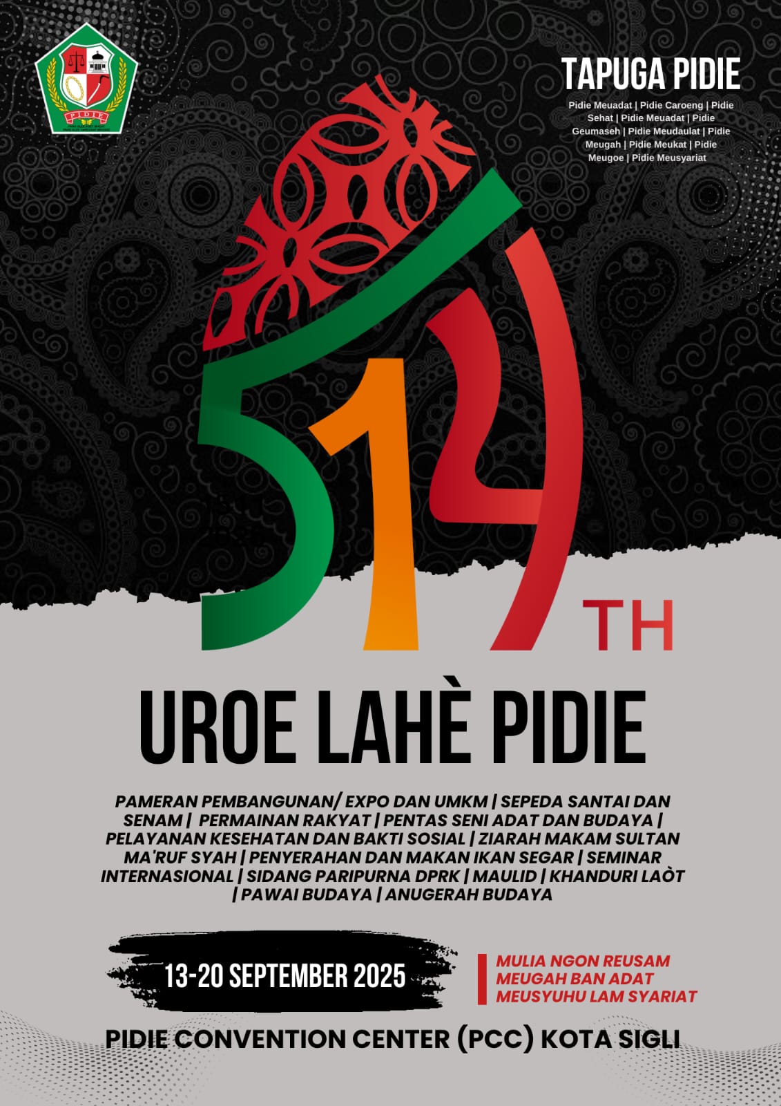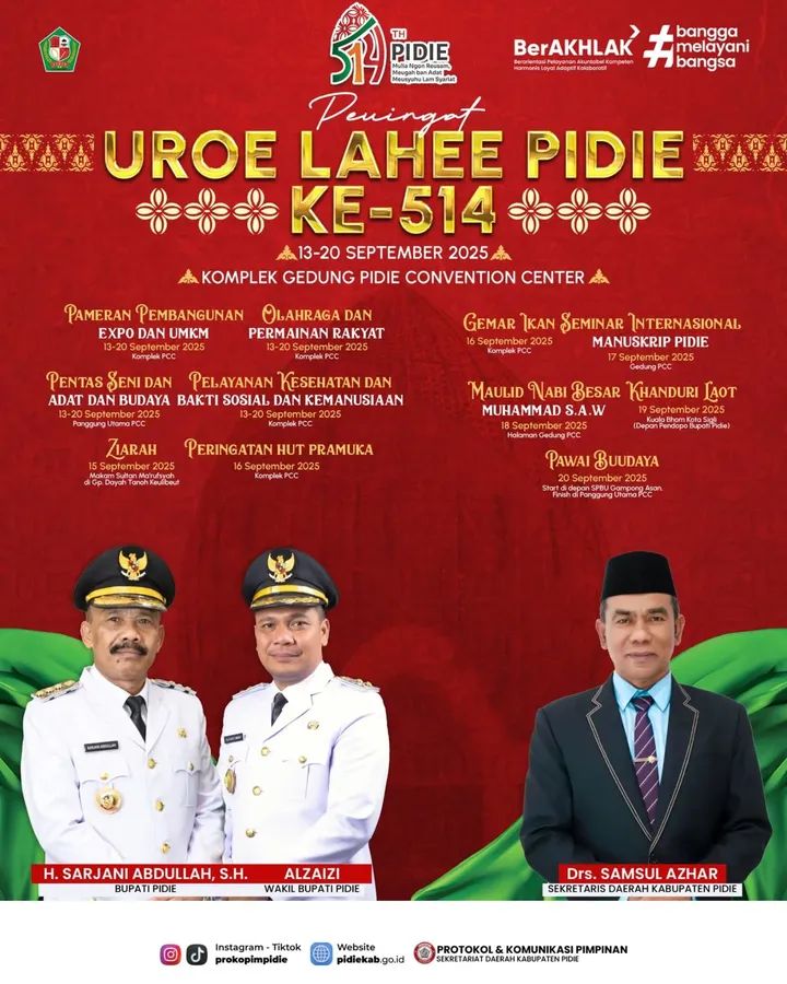 - Pembukaan Acara Hari Jadi ke-514 Pidie (17 September 2025) oleh Bupati Pidie, H. Sarjani Abdullah, S.H., M.H.