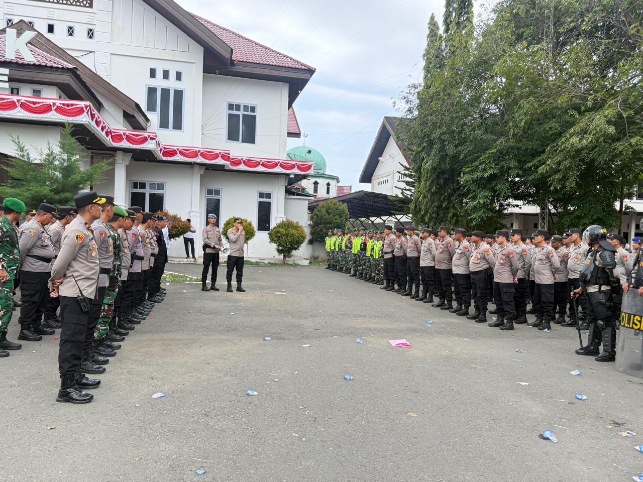 Kapolres Pidie AKBP Jaka Mulyana, S I.K., M.I K., melalui Kabag Ops AKP Raja Aminuddin Harahap, S.Sos, menyampaikan, total personel yang diterjunkan mencapai lebih dari 300 orang, terdiri dari 240 personel gabungan Polres Pidie, 85 personel PHH Sat Brimob Polda Aceh, serta 54 personel Kodim 0102/Pidie.