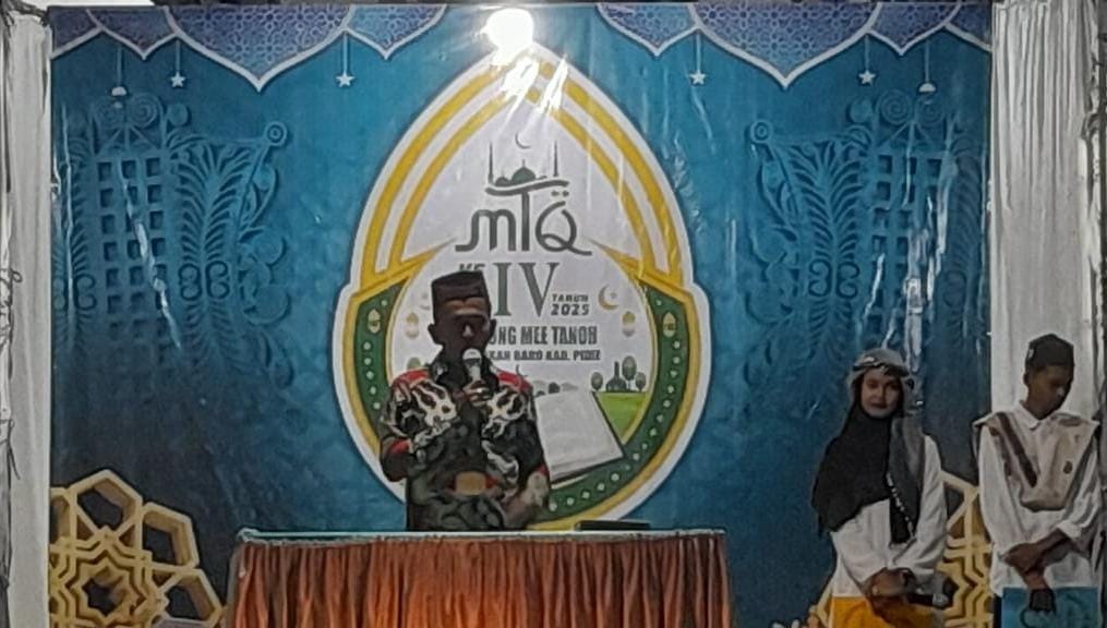 Lintas Berita Rakyat I Pidie – Camat Peukan Baro, Iswadi, S.Hi, secara resmi membuka Musabaqah Tilawatil Qur’an (MTQ) IV Tingkat Gampong Mee Tanoh tahun 2025, Senin (08/09/2025) malam.Pembukaan MTQ berlangsung khidmat dan penuh semangat kebersamaan.