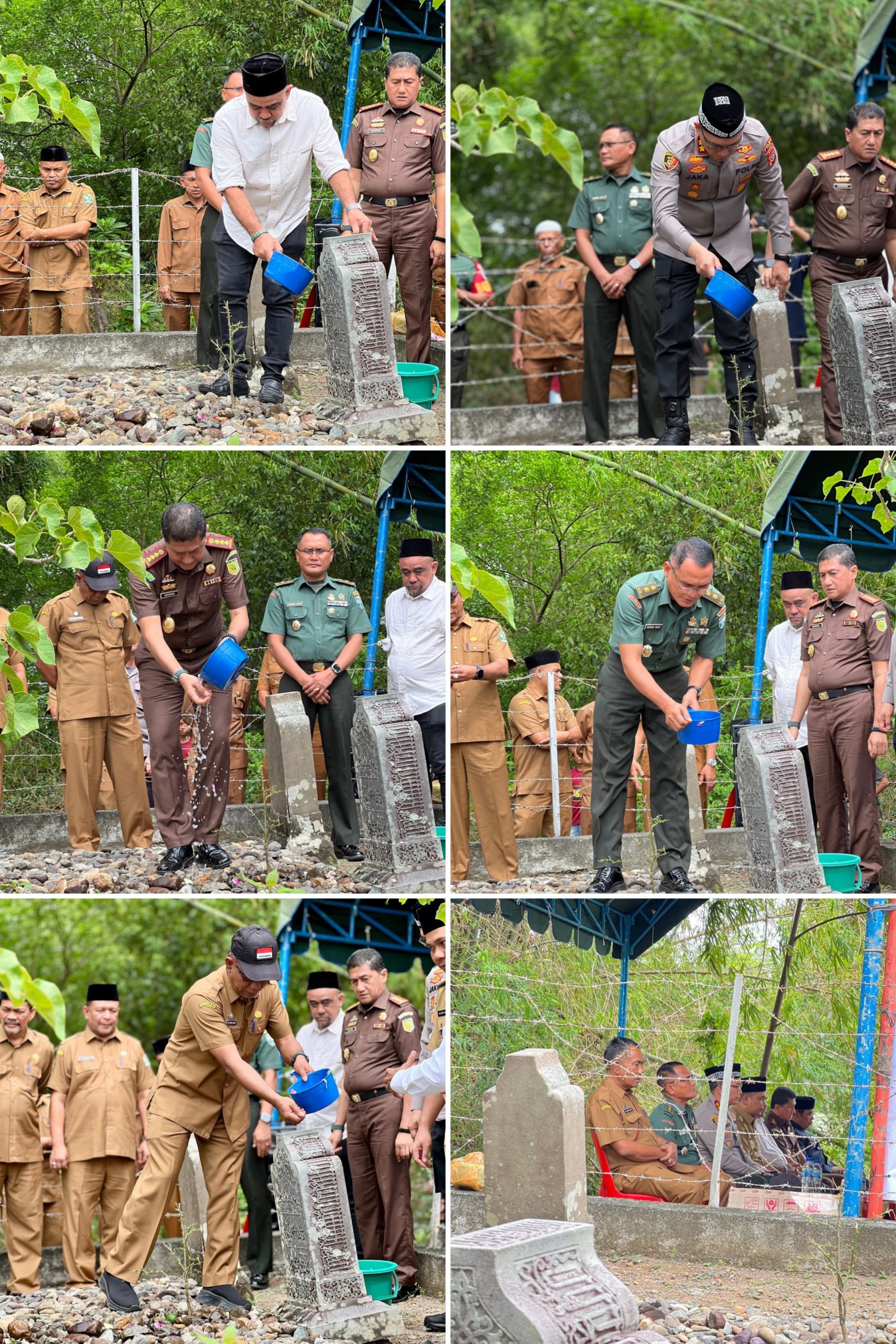 Usai mendengarkan tausiyah sejarah singkat, acara ditutup dengan tabur bunga dan “Rah” muka di area makam oleh Wabup Alzaizi, diikuti oleh unsur Forkopimda serta seluruh yang berhadir.