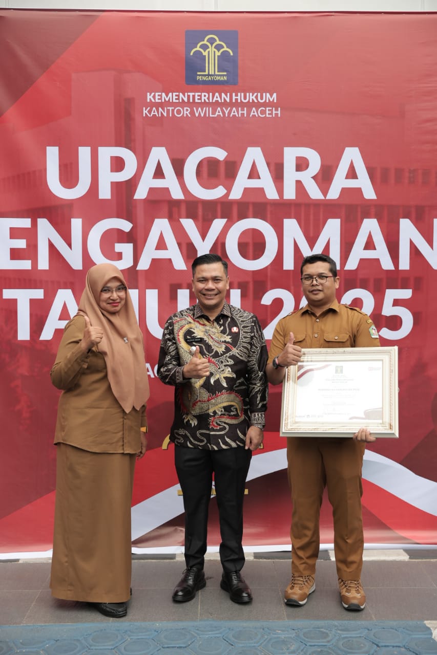 Lintas Berita Rakyat I Pidie – Pemerintah Kabupaten Pidie menerima penghargaan Indeks Reformasi Hukum (IRH) Tahun 2025 dari Kemenkumham RI, yang diserahkan oleh Kepala Kantor Wilayah Kementerian Hukum Aceh, Dr. Drs. Meurah Budiman, S.H., M.H., dalam upacara hari pengayoman ke-80, Jumat (22/08/2025), yang digelar di Kantor Kementerian Hukum Wilayah Aceh.