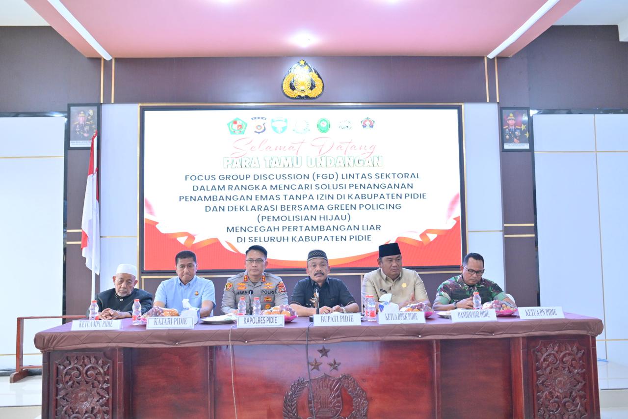 Ditambahkannya, bahwa Polres Pidie bersama stakeholder terkait ingin mencari solusi bersama melalui konsep green policing yang diinisiasi oleh Kapolda Aceh untuk menangani masalah lingkungan, khususnya pertambangan ilegal, dengan pendekatan yang lebih humanis dan berbasis lingkungan, sehingga dalam penanganan masalah PETI dapat menyentuh akar masalah dan melibatkan semua pihak.