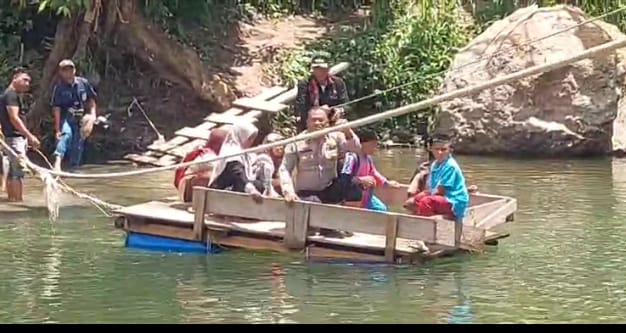 Lintas Berita Rakyat | Aceh Tengah – Sebagai wujud hadirnya Polri di tengah masyarakat, Polsubsektor Rusip Antara Polres Aceh Tengah turun langsung membantu anak sekolah dan warga menyeberang sungai menggunakan rakit, Kamis (11/9/2025).