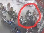 Foto. Tangkapan layar rekaman CCTV di SPBU Tan Saril, saat pelaku perekaman vidio viral menggunakan helm putih sedang mengakses tombol dispenser Pompa SELANJUTNYA..